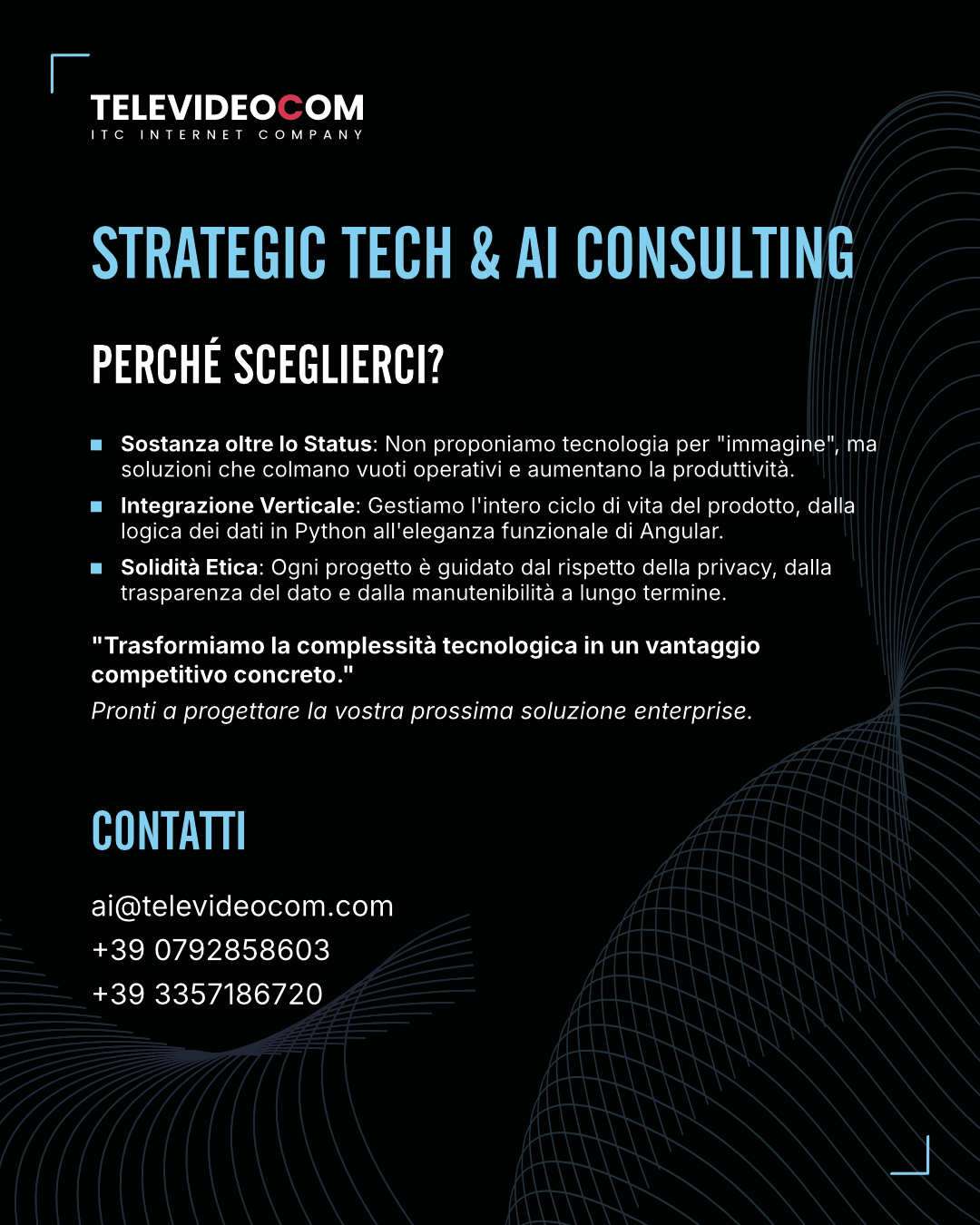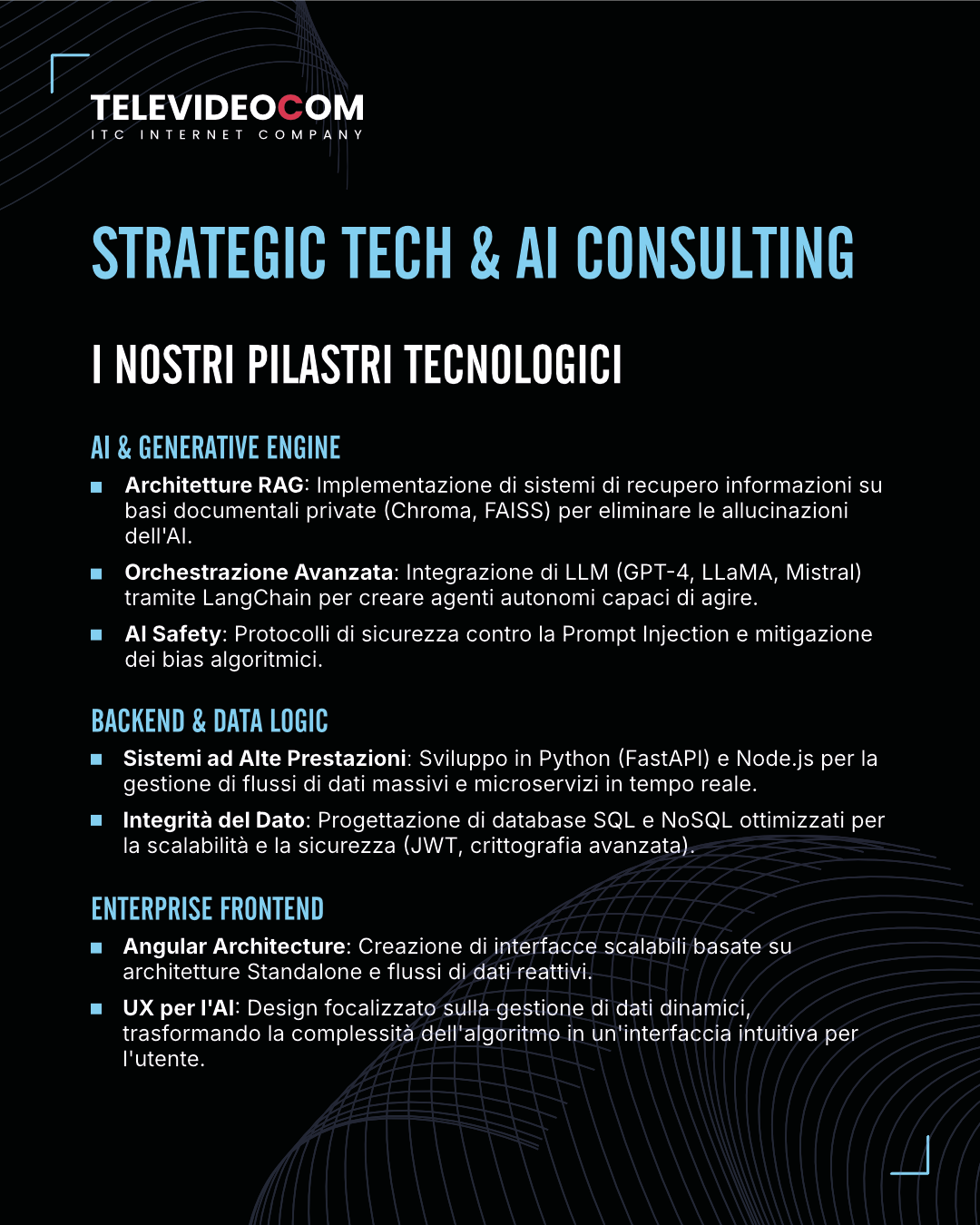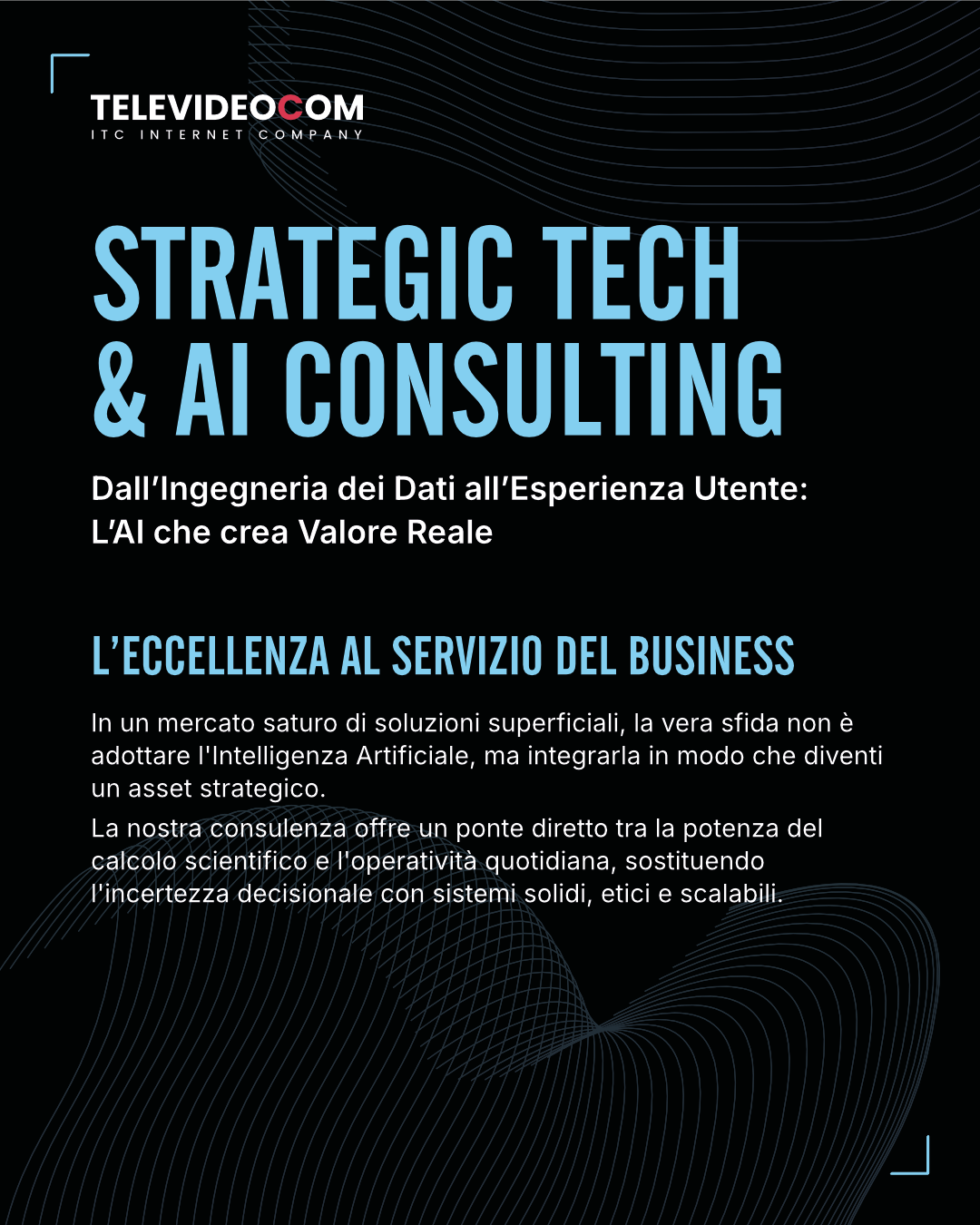 Televideocom è una rinomata Internet Company nel settore ICT, specializzata in prodotti e servizi di alta qualità su misura. Migliora il business dei clienti con tecnologie avanzate, offrendo soluzioni innovative per aziende pubbliche e private. La sede operativa di oltre 2000 mq include un Data Center autonomo, conforme agli standard di qualità e sicurezza, con elevata connettività grazie a 3 circuiti in fibra ottica.